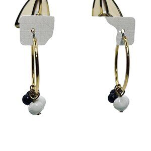 6. Gold tone hoop pierced earrings with black and white charms - 1 1/4" in diameter