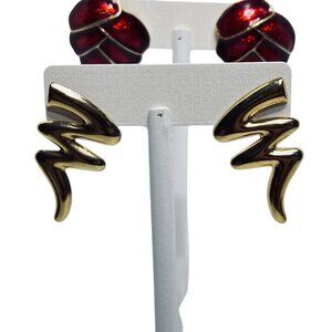 5. Gold tone lightning strike pierced earrings - 7/8" wide X 1 3/8" tall