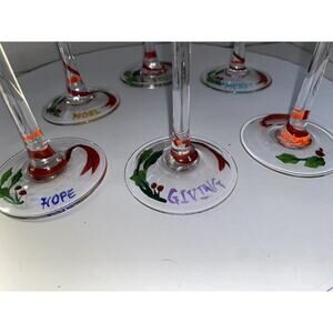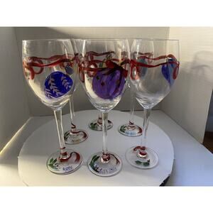 Lot Of 6 Hand-painted Christmas Stemware Wine Glasses Decorated With Ornaments