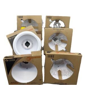 The Lithonia Lighting 6" White Baffle Recessed Light Trim Ring 7B2MW Lot Of 6 is a set of steel trim rings designed for indoor and outdoor ceiling-mounted lighting fixtures. The white color adds a clean and modern look to the recessed lights, and the brand Lithonia Lighting ensures quality and durability. With a pack of 6 units, these trim rings are a practical and stylish addition to any lighting setup. Made in China, they are easy to install and personalize to suit your home or space. Some of these items do not have a box. Thank you for shopping with Integrity Sales. L.