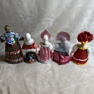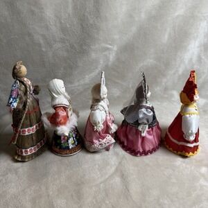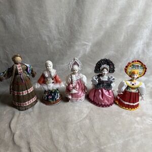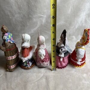 Lot Of 6 Original Vintage Russian Traditional Folk Dolls Handmade Porcelain Face
