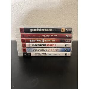 Listing is for Lot Of 6 PlayStation 3 Games. GTA IV, Guitar Hero, Fight Night, assassin‘s Creed, Red faction Armageddon and Rainbow six vegas. All games were tested and working. Ships with USPS Ground advantage