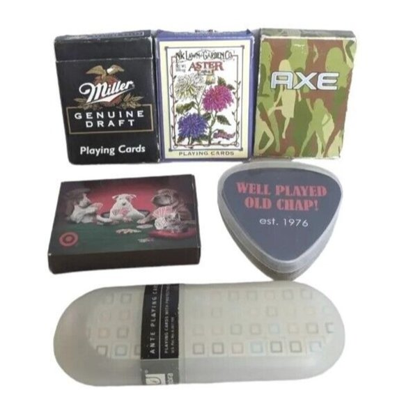 Lot Of 6 Playing Card Decks Target Dogs Miller Beer Shape Guitar Pic Axe Floral