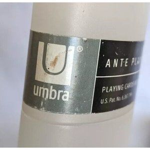 - Umbra Ante Playing Cards. Cards are a long oval shape. Comes in a clear plastic case.