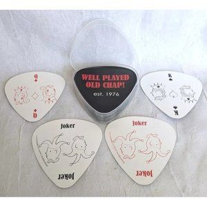 - "Well Played Old Chap! Est. 1976". Comes in a clear plastic case that is shaped like a guitar pic.