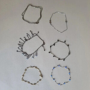 Lot Of 6 Variety Of Silvertone Bracelets Chain Beaded Blue Stars Hearts