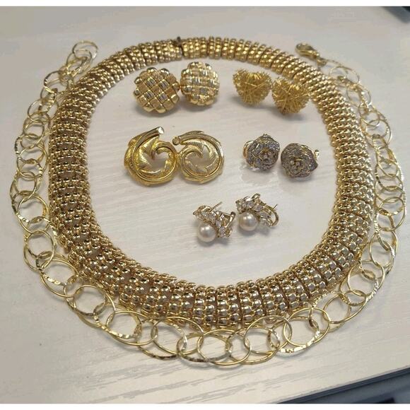 Lot Of 7 Gold Tone Jewelry 925 Sterling Silver 2 Necklaces 5 Pairs Earrings 165g