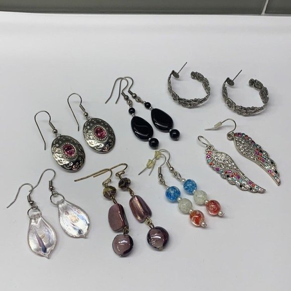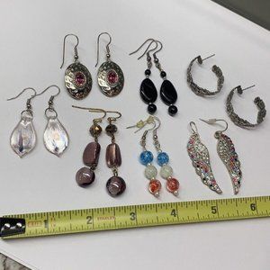 Lot Of 7 Pierced Dangle Drop Earrings - Beaded / Metal Mix