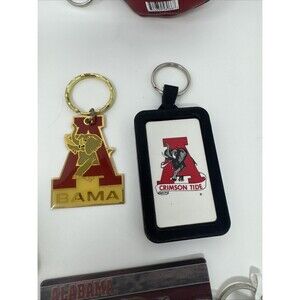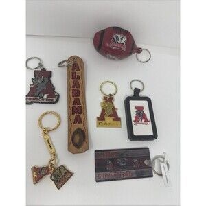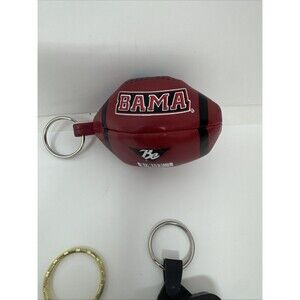 Lot Of 7 Vintage University Of Alabama Crimson Tide Football Keychains...hologram, plush football, leather engraved, sound around, Bama A metal, 2 hanging metal ones, Rubber Crimson Tide.