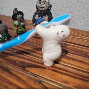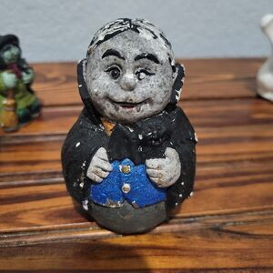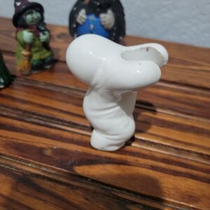 This lot of 8 miniature figures is perfect for creating a Halloween village scene. The spooky figures include skeletons, ghost, witch, and other Halloween themes, creating a chilling atmosphere. Made of ceramic and porcelain, these multicolored figurines have a matte finish and are designed in a 1980s style. Add these original pieces to your Halloween collection to bring a touch of horror and whimsy to your decor.