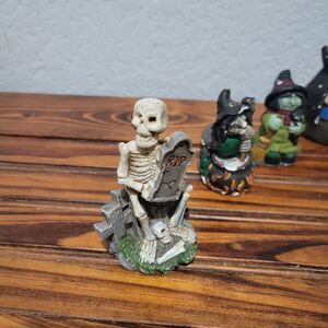 Lot Of 8 Miniature Figures Halloween Village Mini graveyard Skeleton Ghost Witch