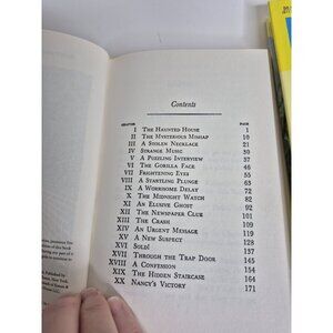 This lot of 8 Nancy Drew books includes hardcover editions from Series 2 through 9, featuring titles such as "The Hidden Staircase" by Carolyn Keene. Published by Penguin Young Readers Group in 1930, these books are part of the classic Nancy Drew series known for their mystery and detective stories, thrilling plots, and engaging illustrations. With a compact size of 7.5 inches in length and 5 inches in width, these books weigh 7.8 ounces each and contain 192 pages of captivating storytelling for readers of all ages. (DSC)