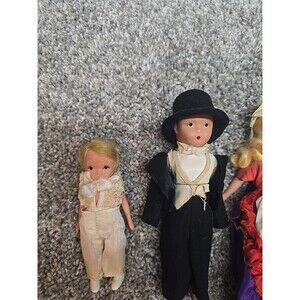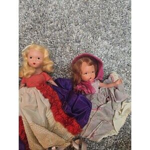 Dolls are in overall good condition. Some flaws noted on the shoes as pictured. One Dolls face has some glue on the side where I believe the hair used to be glued.