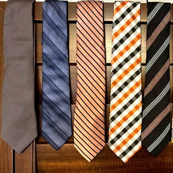 Elevate your style with this lot of 9 luxury silk ties featuring various patterns, embroidered logos, and a preppy theme. Made from high-quality woven silk fabric, these ties are a classic length (57"-60") and width, with adjustable features for a comfortable fit. Each tie is a one-size-fits-all, with a multicolor design that adds a touch of money and abstractness to your outfit.