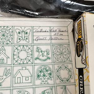 9 vintage needlepoint crafts including 1 crewel kit, 4 cross-stitch kits, 2 quilting pattern packs, and 2 embroidery kits