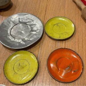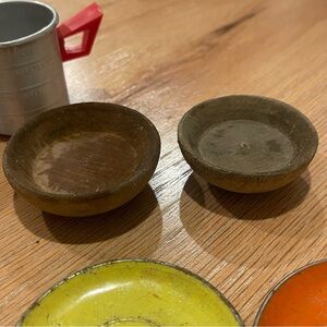 Normal wear for an antique. The only major flaw I see if one of the ceramic utensils is broken