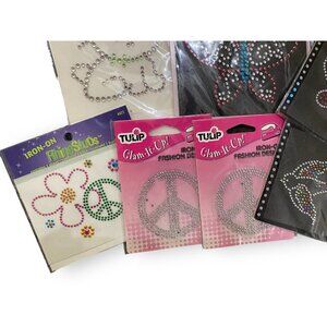 Lot Of Rhinestone Iron-On Patches Butterfly Bunny Peace Sign Flower Tulip Craft