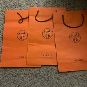 Lot Of Three Used Hermes Shopping Paper Bags In Awesome Condition Measures 11”x 16”x4”.