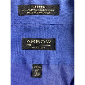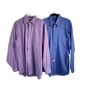 This set includes two high-quality dress shirts: a vibrant blue Arrow shirt and a refined purple Kirkland shirt, both designed for comfort and style. Sleeve lengths are XLong 34/35.