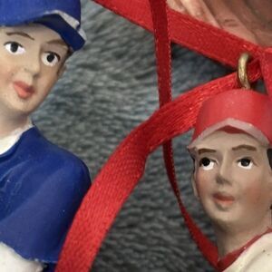 This lot of vintage baseball themed Christmas ornaments includes 11 ornaments and 1 small tree topper, all featuring a baseball theme. Perfect for collectors or fans of the sport, these decorations would make a unique and nostalgic addition to any Christmas tree. The vintage design adds a classic touch to the holiday decor, while the tree topper serves as a special focal point for the display. Whether for display on the tree or as a fun gift for a baseball enthusiast, these ornaments are sure to bring joy and a touch of retro charm to the season.