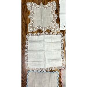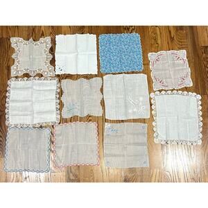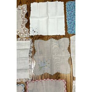 Lot Of Vintage Embroidered Delicate Handerchiefs 11 Total Cottagecore. Preowned. Great condition. See size in photos. Comes from smoke free home. Ships out fast!