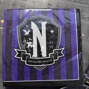 Lot Of Wednesday Addams Party Table Supplies Paper Plates And 2 Packs Of Napkins