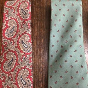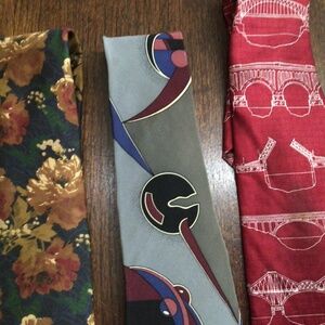 Lot of five 100% silk ties. All the ties are in great shape. List to follow: One tire is unbranded, but it says 100% Italian silk, one tire is Allen Folly , Made in England and handsewn, one Bugatti 100% Italian silk, one, Josh Bach, and one Marc Jeffries made in England handmade. If you have any questions, please contact me. I am currently running a special if you purchase four or more items from my closet you get 25% off the entire purchase. Also I’m running a special on dresses you buy one get one of equal or lesser value for free thank you and have a great day.