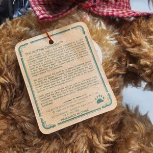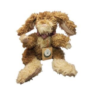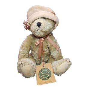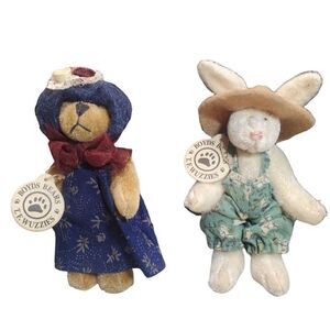 From left to right top; Alovella Bear, Bedford 17" Bunny, URSA 1997 black bear plush(missing tags) and if front; T.F. Wussies Springtime Easter Bunny and Tatum blue dress bear. All have tags except for the black bear. Believe all are vintage.