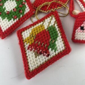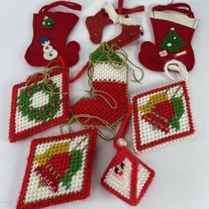 Lot Plastic Canvas Yarn Needlework Quilted Felt Cut Out Christmas Ornaments VTG