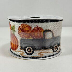 Up for your consideration is a lot of Fall ribbon. There is a burlap ribbon and a truck ribbon that hasn't been used. There is a photo of two burlaps with one being new and I don't think any is missing from the other burlap ribbon, I'm not positive though.