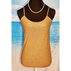 Lot Set of 2 GOLD and BROWN Woman's CAMI Top CAMISOLE Soft Shell Layer Shirt MED