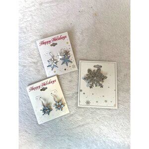 Lot Snowflake Jewelry Pin 2 PRS Earrings Snow Winter Christmas Holiday NEW