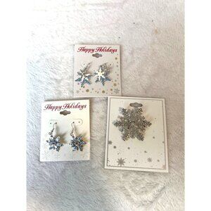 Lot Snowflake Jewelry Pin 2 PRS Earrings Snow Winter Christmas Holiday NEW Smoke free home All brand new