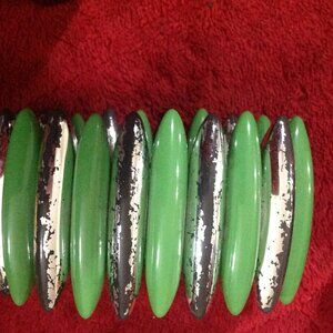 Here is a vintage lot of 6 bracelets. The elastic is still good and tight in them all. These are from my mom's estate. She may have worn some of them because she did like large bracelets.
