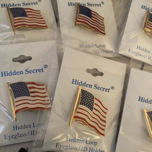 Lot of 10 New, Enamel Patriotic American Flags with eyeglass and ID holder.