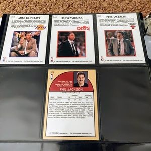 1990-91 NBA Hoops #348 & #308 (Phil Jackson), #349 (Lenny Wilkens), #351 (Mike Dunleavy)