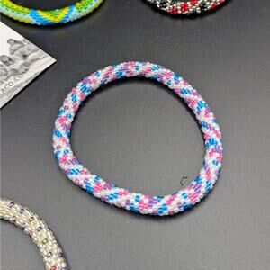 This wholesale lot includes 10 authentic Sashka Co. bracelets, each hand-crocheted bead-by-bead by skilled artisans in the Kathmandu Valley of Nepal.