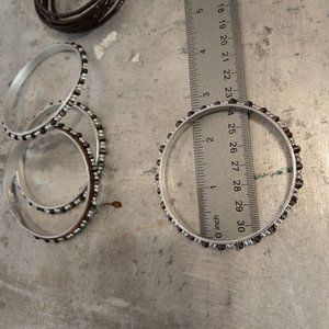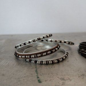 Lot of 10+ Silver Tone and Brown Beaded Bangle Bracelets