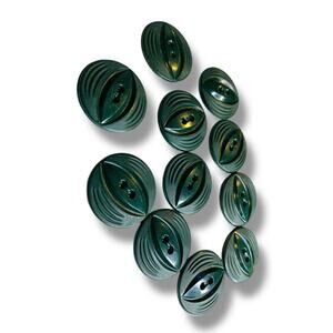 Lot of 11 Midcentury Buttons Assorted Dark Green Plastic Styles Craft Sew 1"
