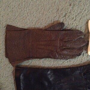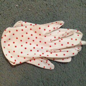 Condition: All except the red and white polka dotted pair have some issues -- the leather (or faux leather, I know not which) ones are wrinkled, and the remainder have fading/smudging around the fingers which washing may or may not remove. Price reflects flaws.