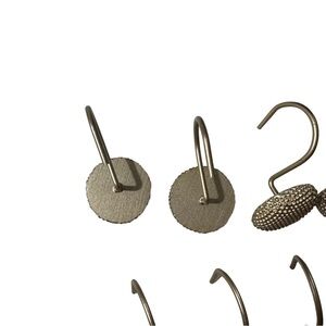 Add a touch of glamour to your bathroom with this set of 12 shower curtain hooks. These Champagne-colored metal hooks measure 1.75 inches in diameter and feature a dotted textured finish. The hooks are 1.25 inches in length and have a sleek gold color that will complement any bathroom décor.