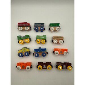Lot of (12) Orbrium Magnetic Wooden Train Engines Cars Mix. All in great condition, but may have some scratches/marks consistent with play.