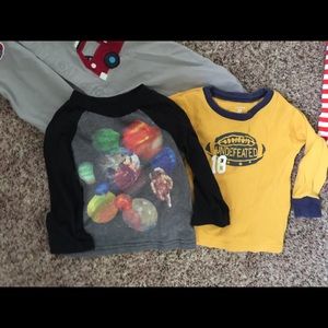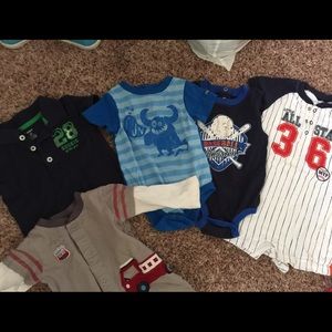 5 onesies, (2 baseball, 1 dog, 1 pirate ship, 1 Lil monster. ) EUC.