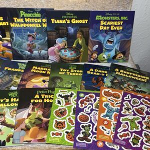 Lot of 13 Disney, Pixar Kids, Toddler Bedtime Story Books, 4 Sticker Sheets New