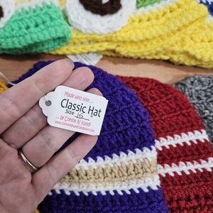 these are 13 Newsboy Style Crochet Baby Hats in the Pac 12 College Football Colors.
