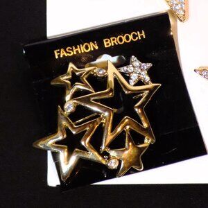 New Forever 21 rhinestone-covered 2-1/4" brooch & 1" pin star set.