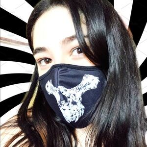 These 7.5" x 5" cotton mask is made of a polyester/spandex blend that is reusable and washable. Mask features printed Phoebe Bridgers skull artwork and a vertical seam down the center for added structure. Masks are one size fits most, and have soft cotton ear straps for comfort.