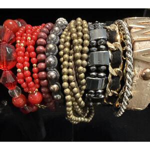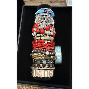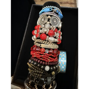 This mixed bracelet lot includes 17 assorted pieces ranging from modern to vintage styles, including some pieces made in India. Every bracelet is wearable and offers a unique look for stacking, styling, or resale.