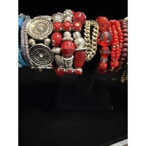 Lot of 17 Mixed Bracelets Bangles Stretch Leather Stone Wrap Wear or Resell