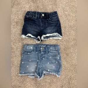 Lot of 18 months baby girl toddler girl Jean shorts cat and Jack jumping beans. Both in very good preowned condition. One has lace detail. Other has pink hearts all over.